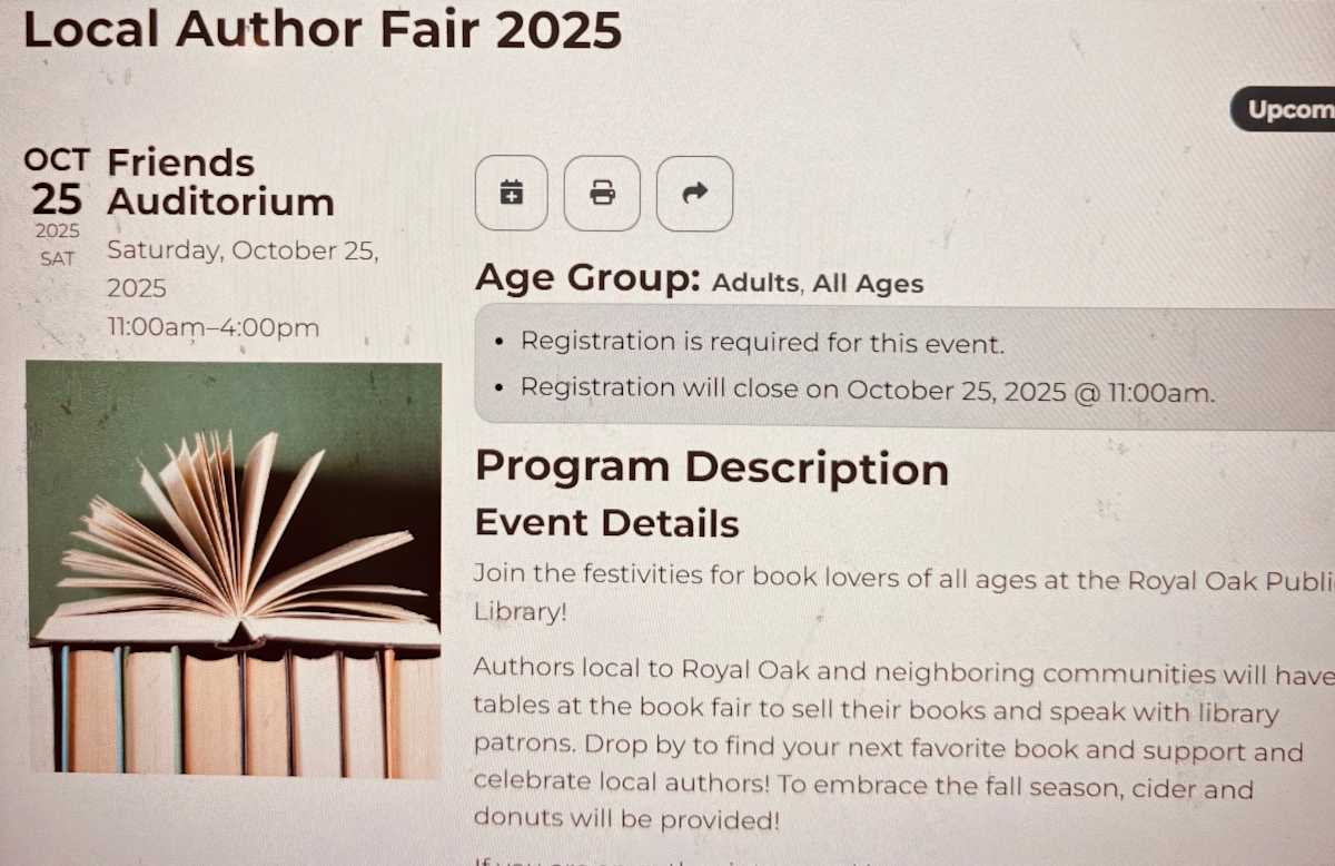 Books and cider and donuts! Join me at the Royal Oak Public Library on October 25, 2025, at the Local Author Fair
